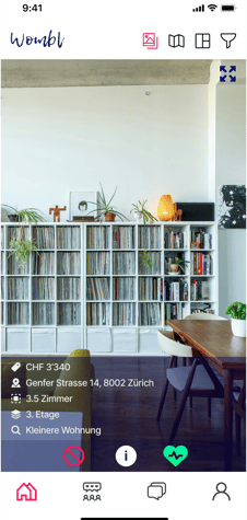 Mit Wombl kannst du ganz einfach deine Wohnung zum Tausch anbieten und dich zu deiner Traumwohnung swipen!